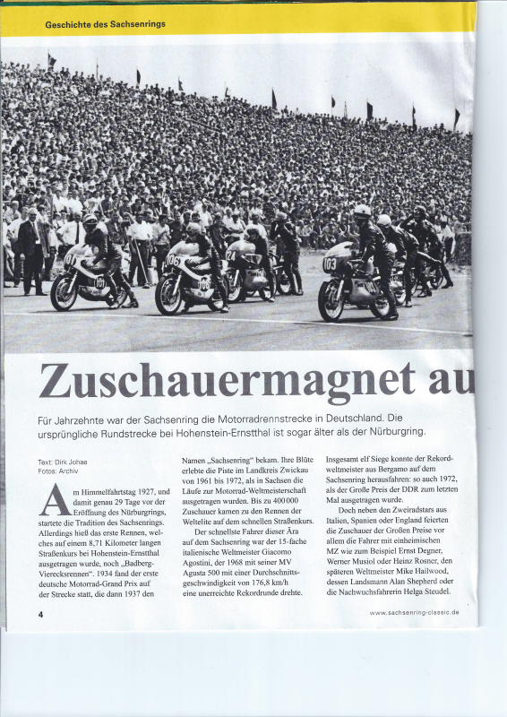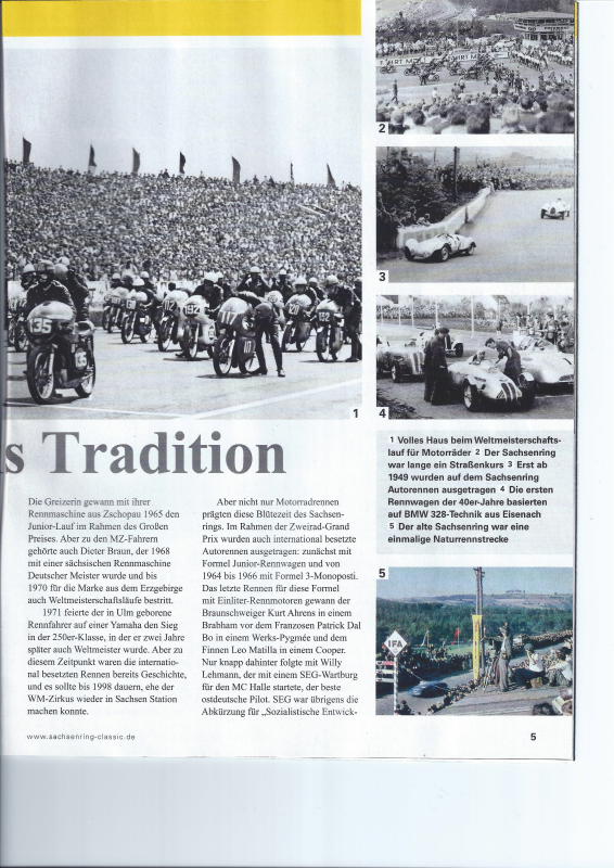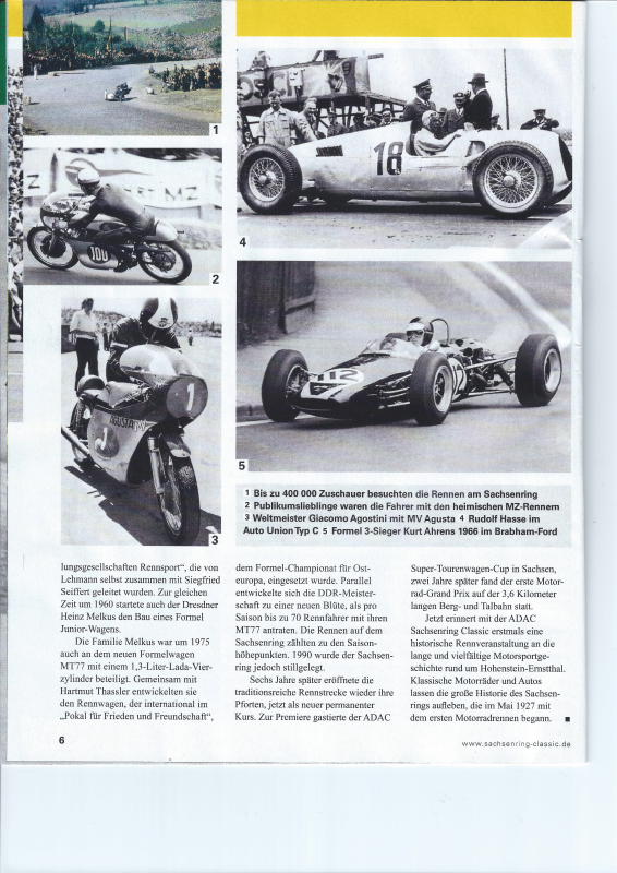 heute habe ich die neue Motor Klassik bekommen. In dieser befand sich eine Beilage zur Veranstaltung "ADAC Sachsenring Classic 2014". In der Anlage habe ich einen Bericht aus früheren Tagen eingescant. Hier wird der Schwiegervater von K. Ahrens kurz erwähnt. Kurt ist auf einem Bild im Formel 3 Brabham-Ford zu sehen.
