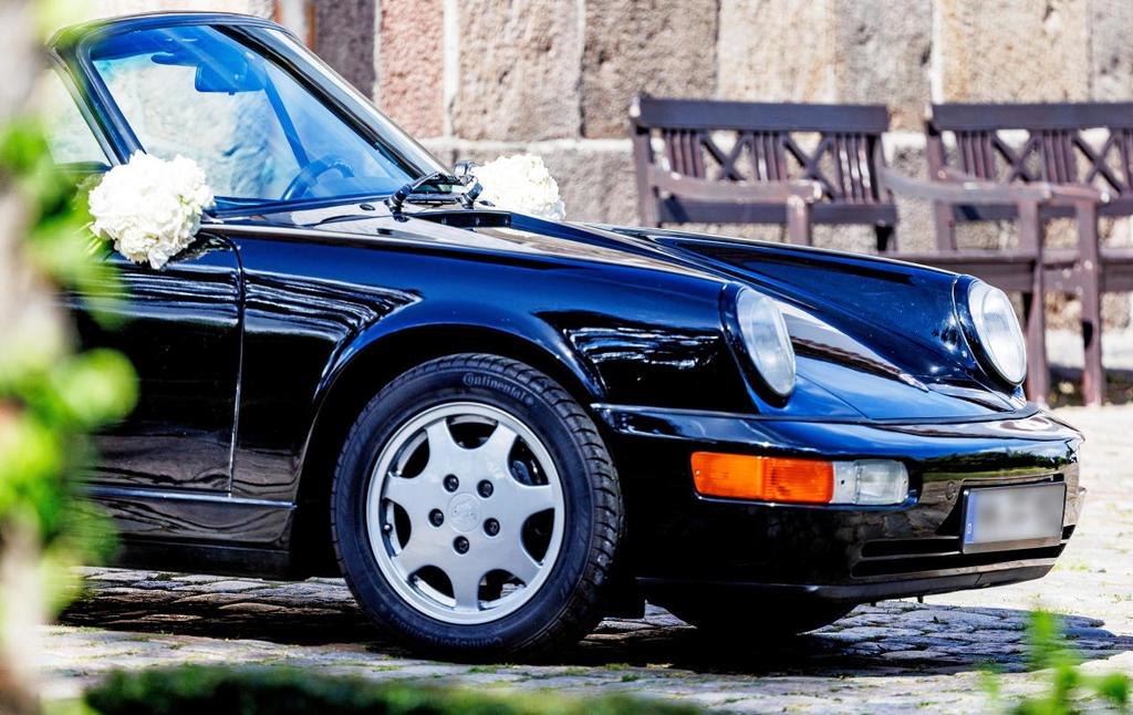 Datenanhang: Ein geschmückter Porsche Targa, das Hochzeitsfahrzeug von Bundesfinanzminister Lindner und seiner Frau. Axel Heimken dpa